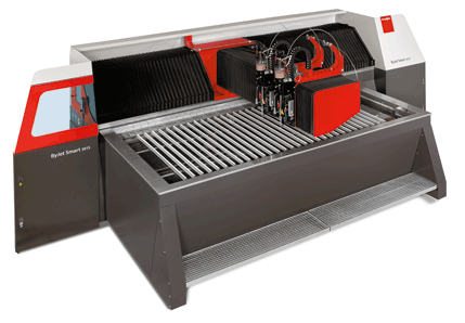 Wyżej wymienione cechy powodują, że potencjał polimerobetonu jako materiału konstrukcyjnego przy produkcji elementów obrabiarek waterjet jest bardzo duży. Pewną barierą w rozwoju aplikacji technologii polimerobetonowych do produkcji elementów tego typu maszyn mogą być tutaj koszty ich wytworzenia. W pierwszej kolejności proces ten wymaga zaprojektowania i wytworzenia formy. Koszt takiej formy w szczególności uzależniony jest od wielkości oraz stopnia skomplikowania wytwarzanego elementu. W przypadku produkcji wanny wycinarki wodnej to poważny wydatek. Niemniej jednak formę taką wykorzystuje się wiele razy a koszty produkcji wanny powinny zmniejszać się wraz ze wzrostem ilości wytworzonych sztuk. Czas wykonania konstrukcji polimerobetonowych jest zdecydowanie bardziej korzystny od technologii konwencjonalnych. Przykładem obrabiarki, która posiada zbiornik wykonany z betonu żywicznego jest maszyna ByJet Smart 3015 firmy Bystronic (rys. 4) [3]zaprezentowana m in. na ostatnich targach MachTool 2012 w Poznaniu.