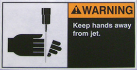 Generalnie rzecz biorąc jest to technologia bezpieczna, oczywiście przy zachowaniu podstawowych zasad BHP. Woda pod wysokim ciśnieniem może spowodować obrażenia, ale aby dostać się w strefę bezpośredniego zagrożenia należy się naprawdę o to postarać. Struga wody wypływa z dyszy bardzo wąskim strumieniem, dysza skierowana jest w dół, w stronę "wanny" nad którą zamocowany jest ruszt, także niemożliwe jest dostanie się operatora czy też innej osoby w strefę niebezpieczną. Oczywiście w momencie kiedy ktoś wpadnie na pomysł aby palcem sprawdzić czy aby na pewno woda pod wysokim ciśnieniem wypływa z dyszy to nie poczuje kiedy go starci. Przy tak dużych ciśnieniach nie jest konieczne podanie ścierniwa aby struga zrobiła krzywdę człowiekowi. Jeżeli chodzi o samą instalację wysokociśnieniową to woda ze względu na swoją małą ściśliwość nie stanowi zagrożenia. W momencie kiedy nastąpi rozszczelnienie instalacji, ciśnienie wody bardzo szybko spada i nie jest niebezpieczne.