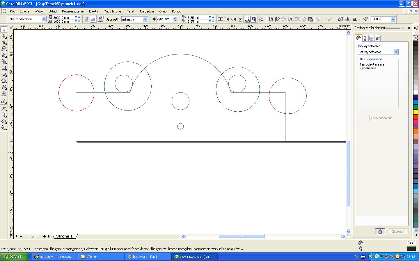 Witam, jako nowy użytkownik mam pewnie dość błahe pytanie, mianowicie używam do rysowania programu coreldraw x3 i nie wiem w jaki sposób zaokrąglać narożniki(może jakaś inna wersja programu?)! Dołączyłem do tematu prosty rysunek w którym narożniki w czerwonych kołach mam zaokrąglić na promień 9cm a prosta styczna z częścią koła na r-5cm. Do tej pory otwierałem wcześniej przygotowany projekt i dokańczałem go na waterjeycie kimla ale jaki Wy macie sposób na taki problem. Z tego co ja znalazłem w opcjach corela to jest zaokrąglenie rogów ale tylko do 10 cm i tylko kwadraty bo przy prostokątach zniekształca się łuczek, a wstawić koło i je przyciąć to też nie wiem zbytnio jak. Z góry dzięki za pomoc. Pozdrawiam.