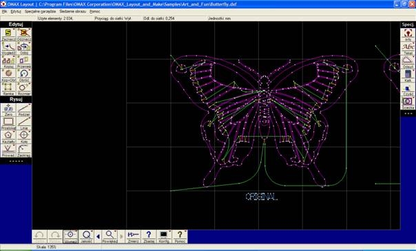 W praktyce program Inteli-Max jest podzielony na dwa połączone ze sobą moduły. Pierwszy z nich Layout przypomina taką prosta wersje Cada. Jak ktoś nie ma innego programu, to może sobie porysować w takim programie. Następnie narysowany rysunek otwiera się przy pomocy programu Make, który steruje pracą maszyny. Ciekawe jest, że w Layoucie można sobie coś tam grzebać nawet jeśli maszyna pracuje, tzn. Make już steruje pracą Omaxa.